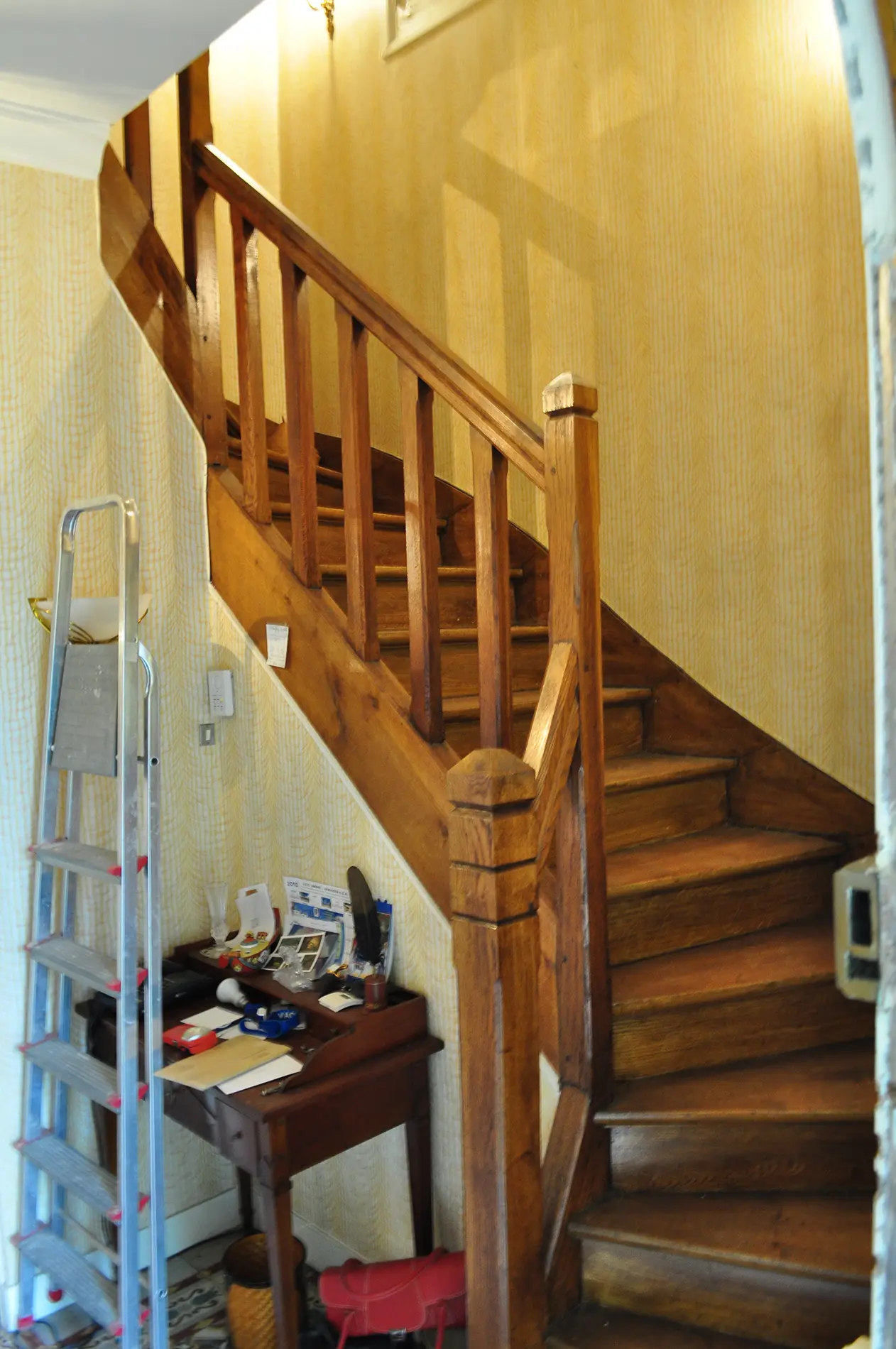La première étape a été de remettre en conformité l’électricité en 2016. On nous parlait ici de risque de mort ou d’incendie. 2017 : changement des fenêtres pour du double vitrage et isolation de l’étage. 2018 : refaire la cave de manière à pouvoir utiliser cet espace pour stocker.