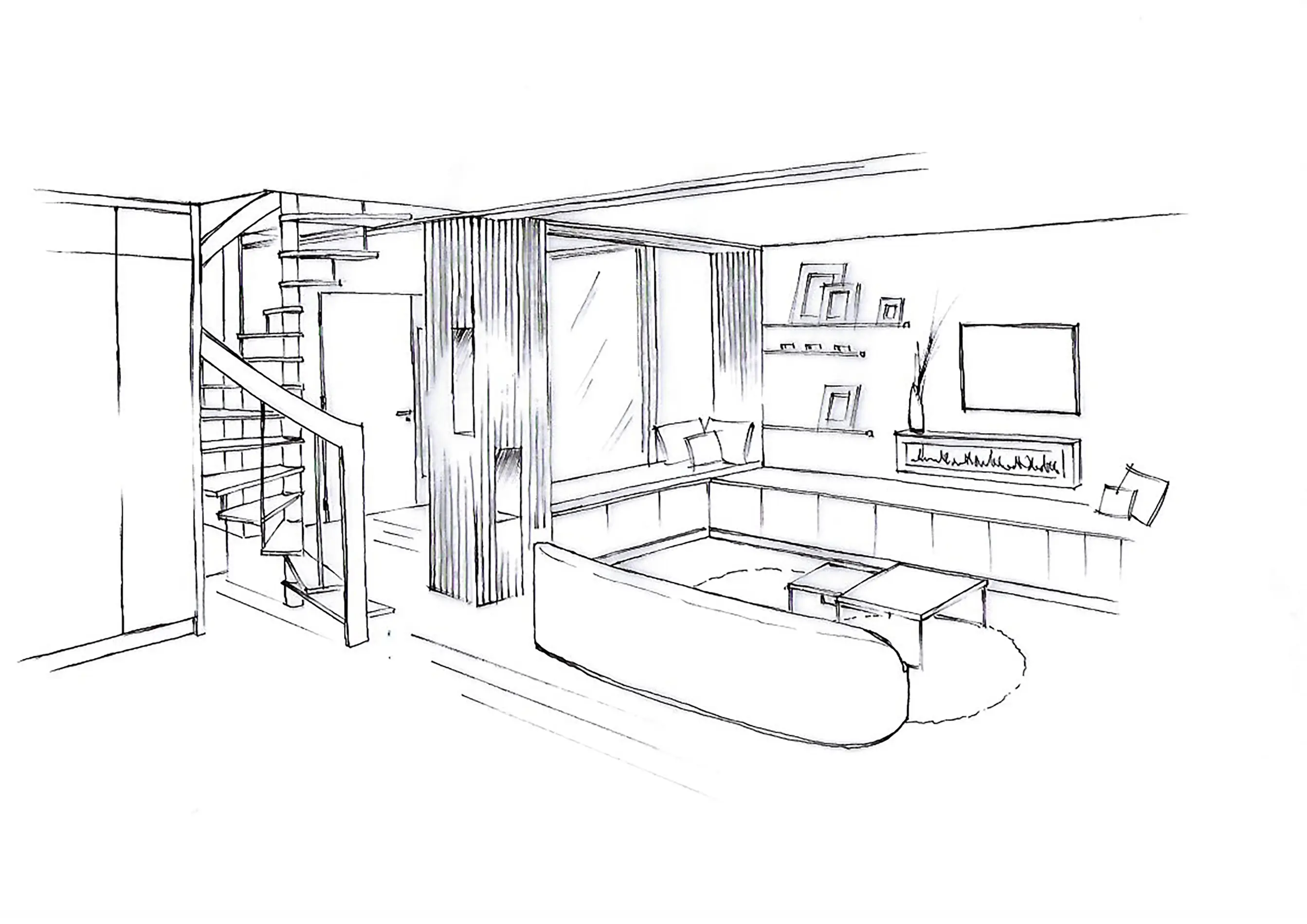 Bien que la maison ait de beaux volumes, elle était dépourvue de décoration, tous les murs étaient blancs, et les espaces étaient trop ouverts, compliquant leur aménagement. Il n’y avait pas de salle à manger distincte, une entrée mal définie, et un poteau se trouvait au milieu de l’espace de vie. Ils souhaitaient également intégrer leurs meubles et objets personnels dans l’agencement.